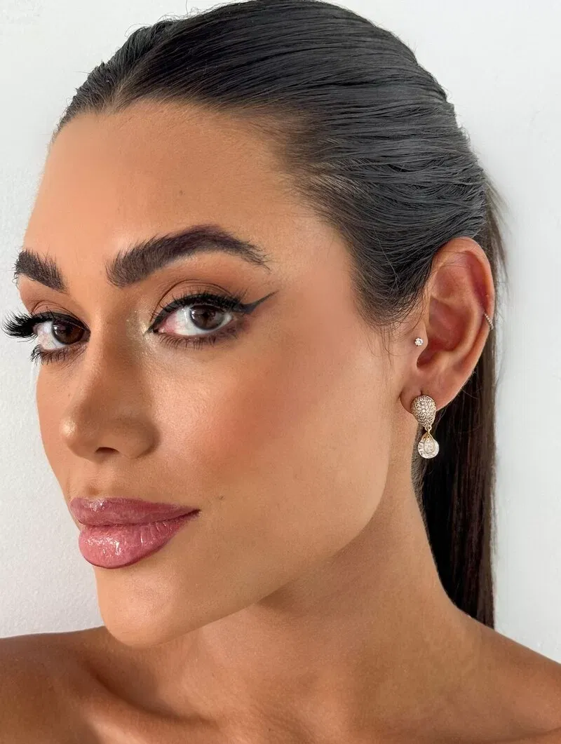 3. Brinco Folheado a Ouro 18k e Prata Gota Cravejada com Zircônia
