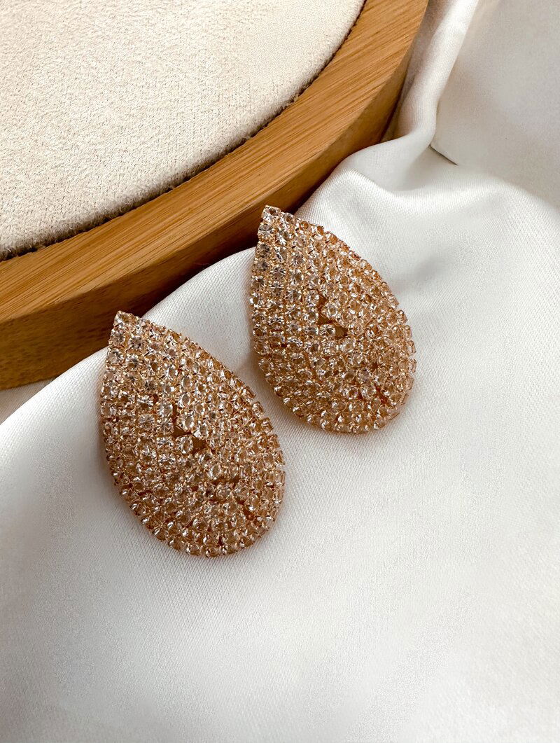 3. Brinco Folheado a Ouro 18k e Prata Gota Luxo Cravejada