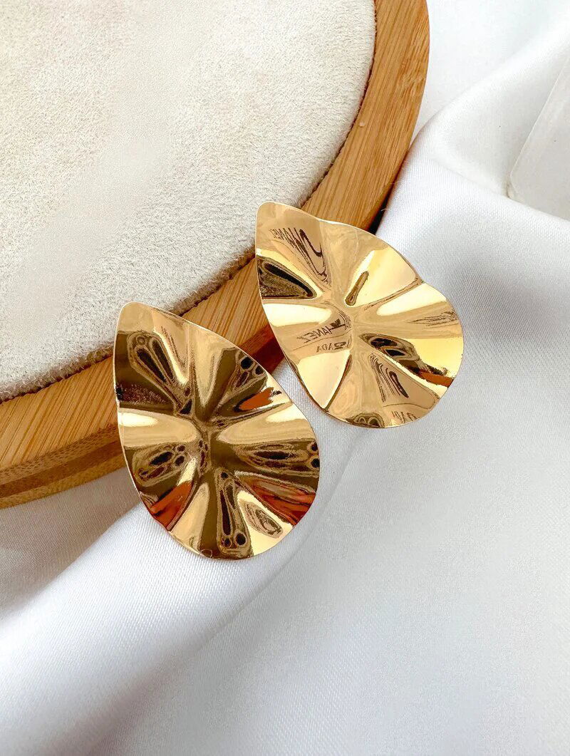 brinco folheado a ouro 18k e prata gota martelada lisa