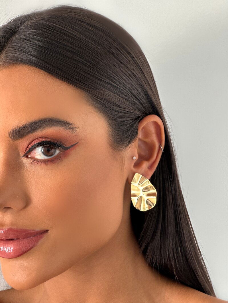Brinco Folheado a Ouro 18k e Prata Gota Martelada Lisa