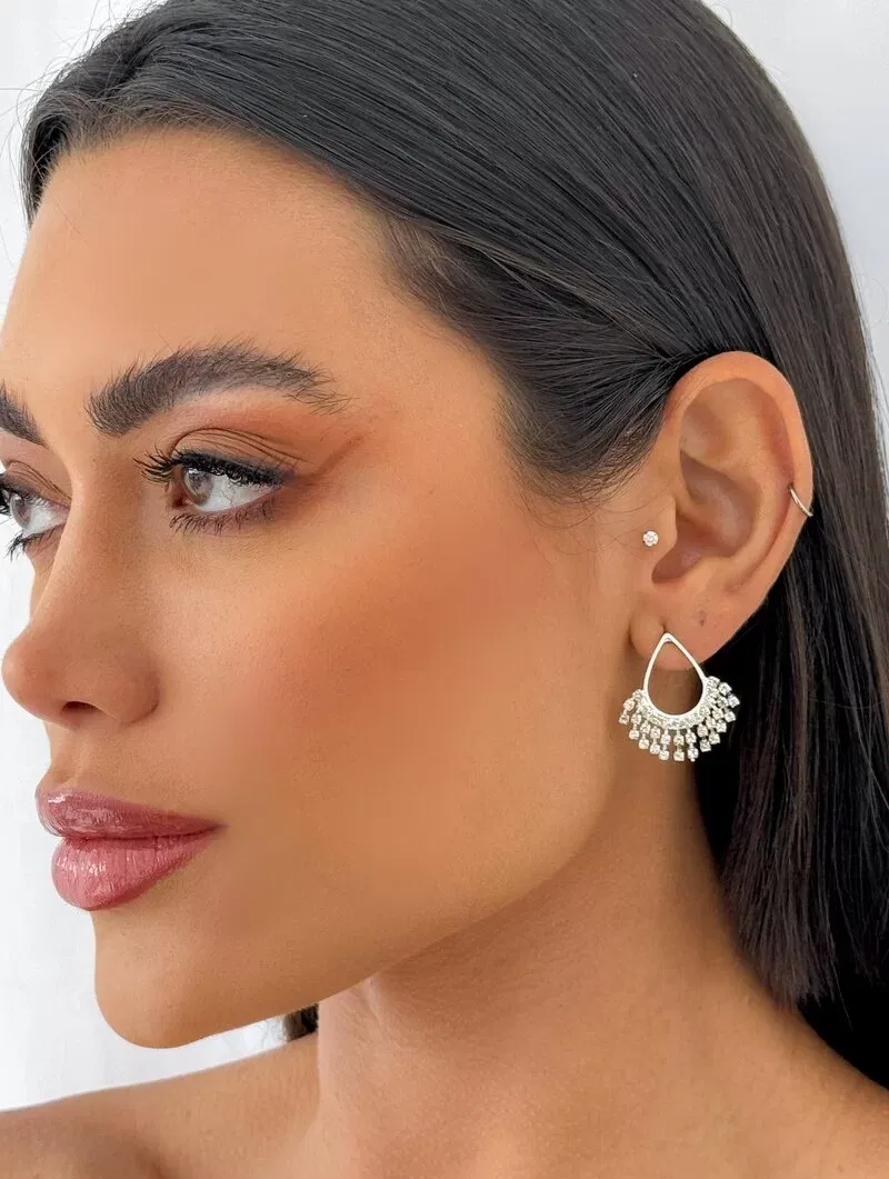 3. Brinco Folheado a Ouro 18k e Prata Gota Vazada com Fios de Zircônia