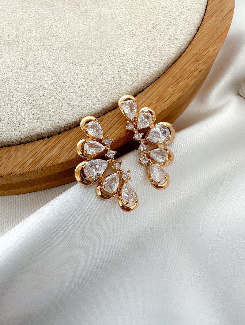 3. Brinco Folheado a Ouro 18k e Prata Gotas de Zircônias Luxo