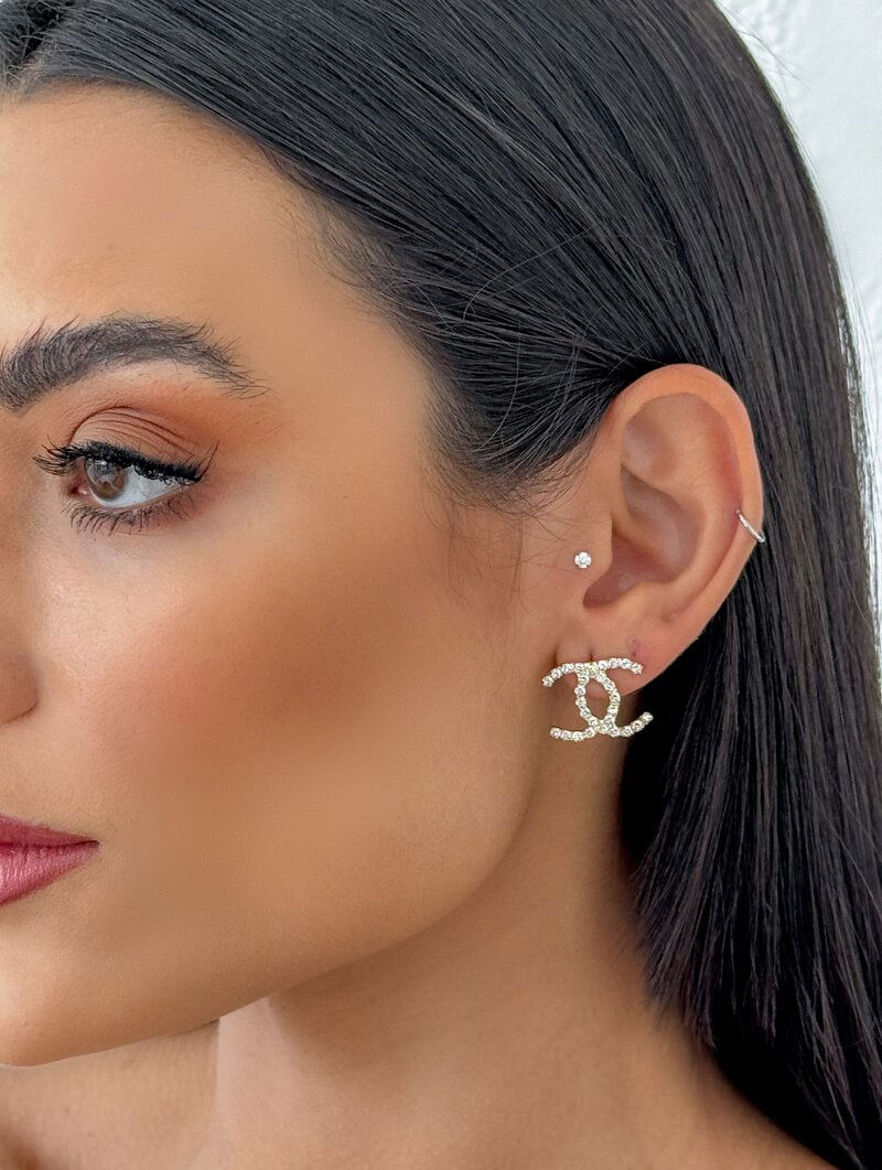 3. Brinco Folheado a Ouro 18k e Prata Inspiração Joalheria Cravejado