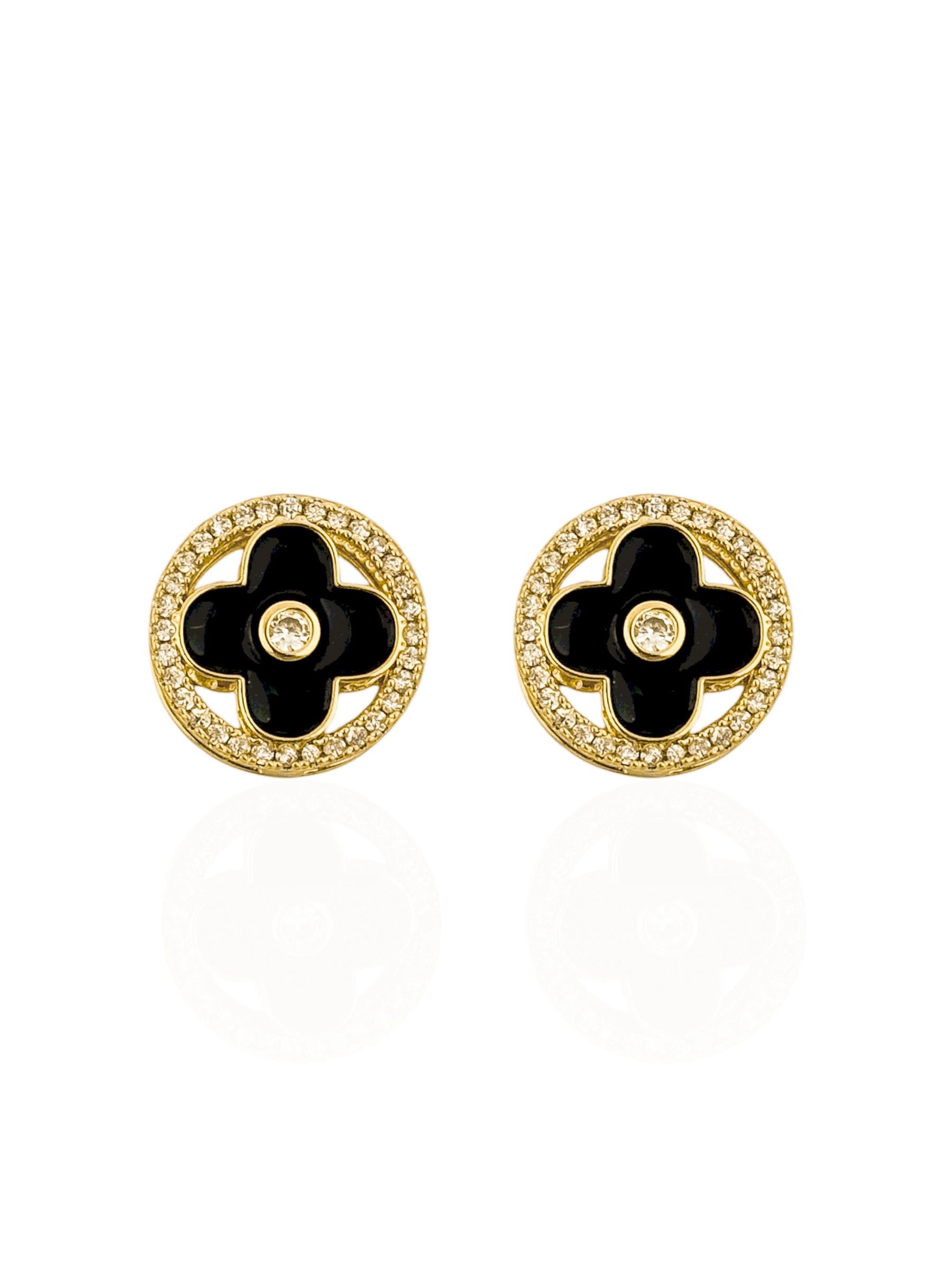 2. Brinco Folheado a Ouro 18k e Prata Inspiração Vg. Resinada Com a Borda Cravejada