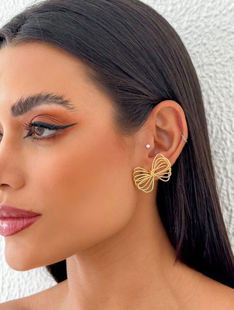 3. Brinco Folheado a Ouro 18k e Prata Laço Fios Vazados
