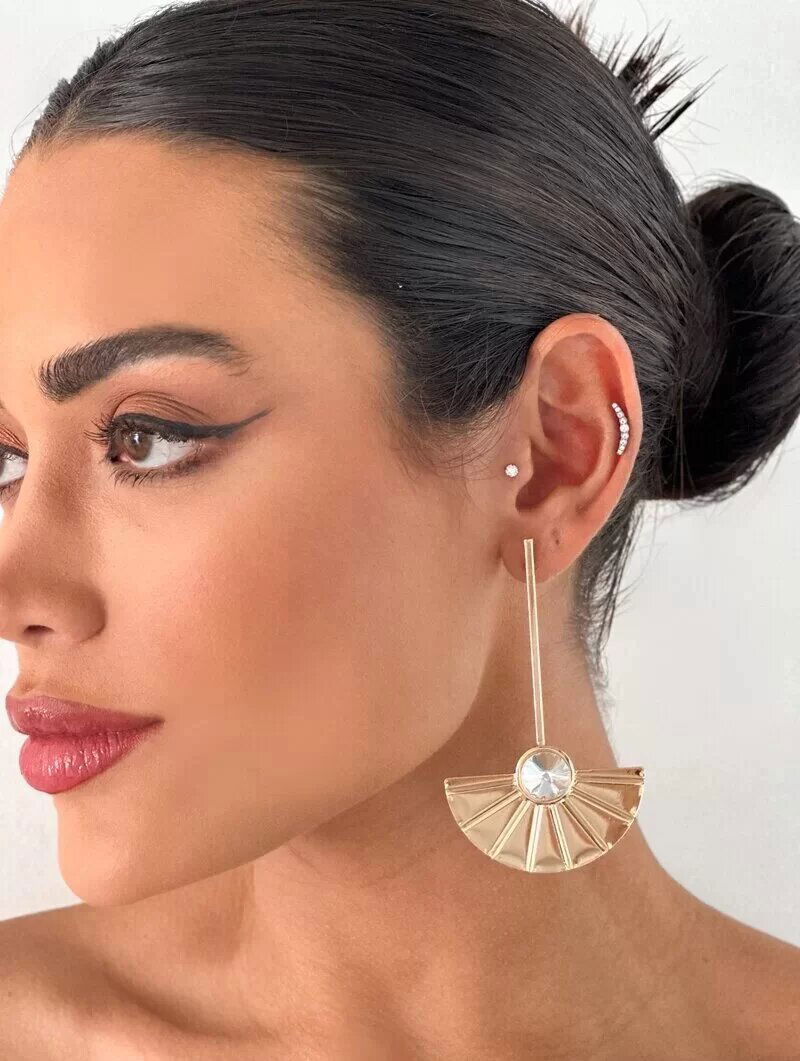 3. Brinco Folheado a Ouro 18k e Prata Leque com Zircônia