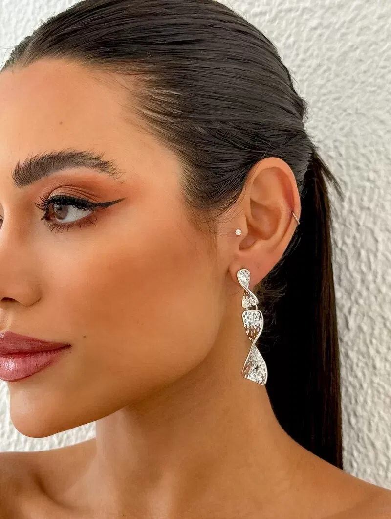 3. Brinco Folheado a Ouro 18k e Prata Longo Martelado Torcido