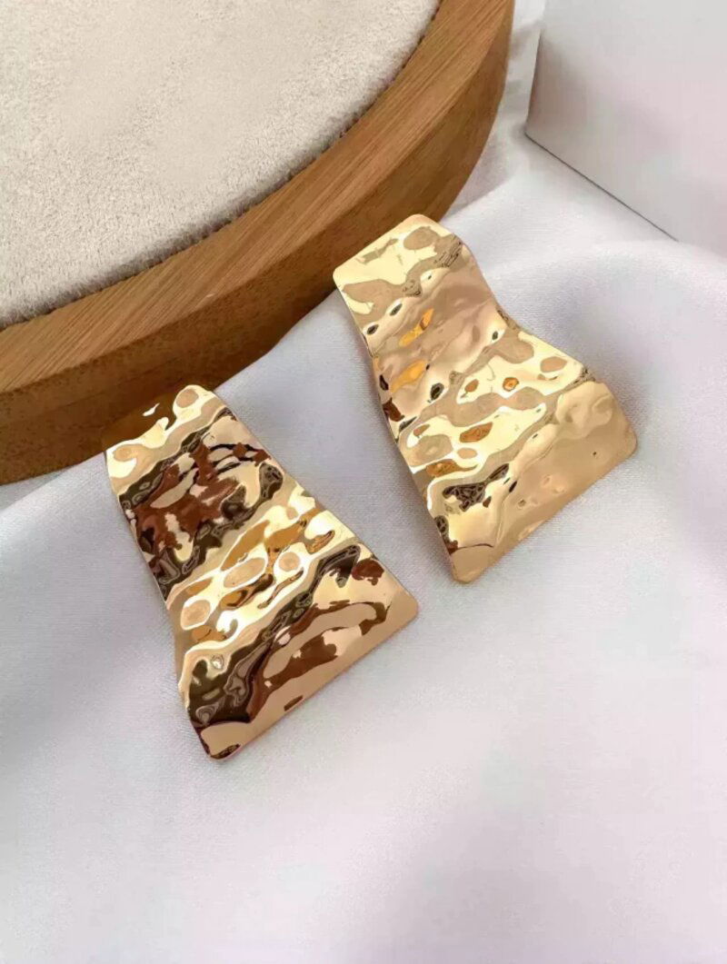 3. BRINCO FOLHEADO A OURO 18K E PRATA MARTELADO DESIGNER ONDULADO.