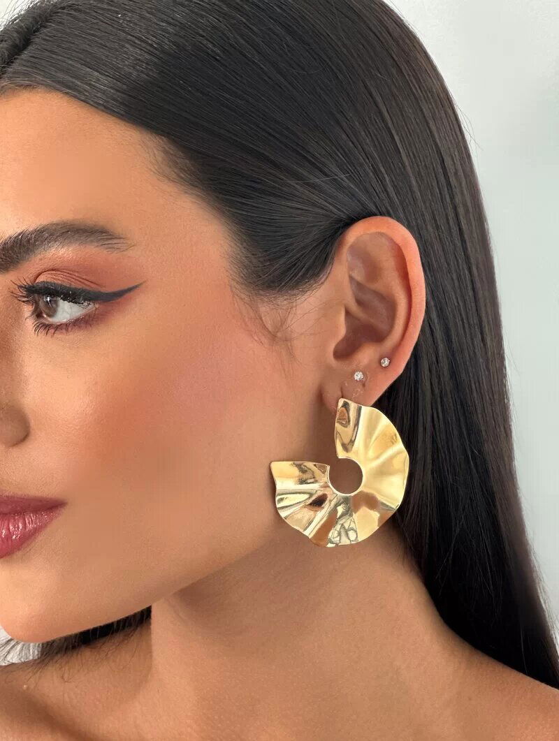 3. Brinco Folheado a Ouro 18k e Prata Maxi Argola Lisa Ondulada