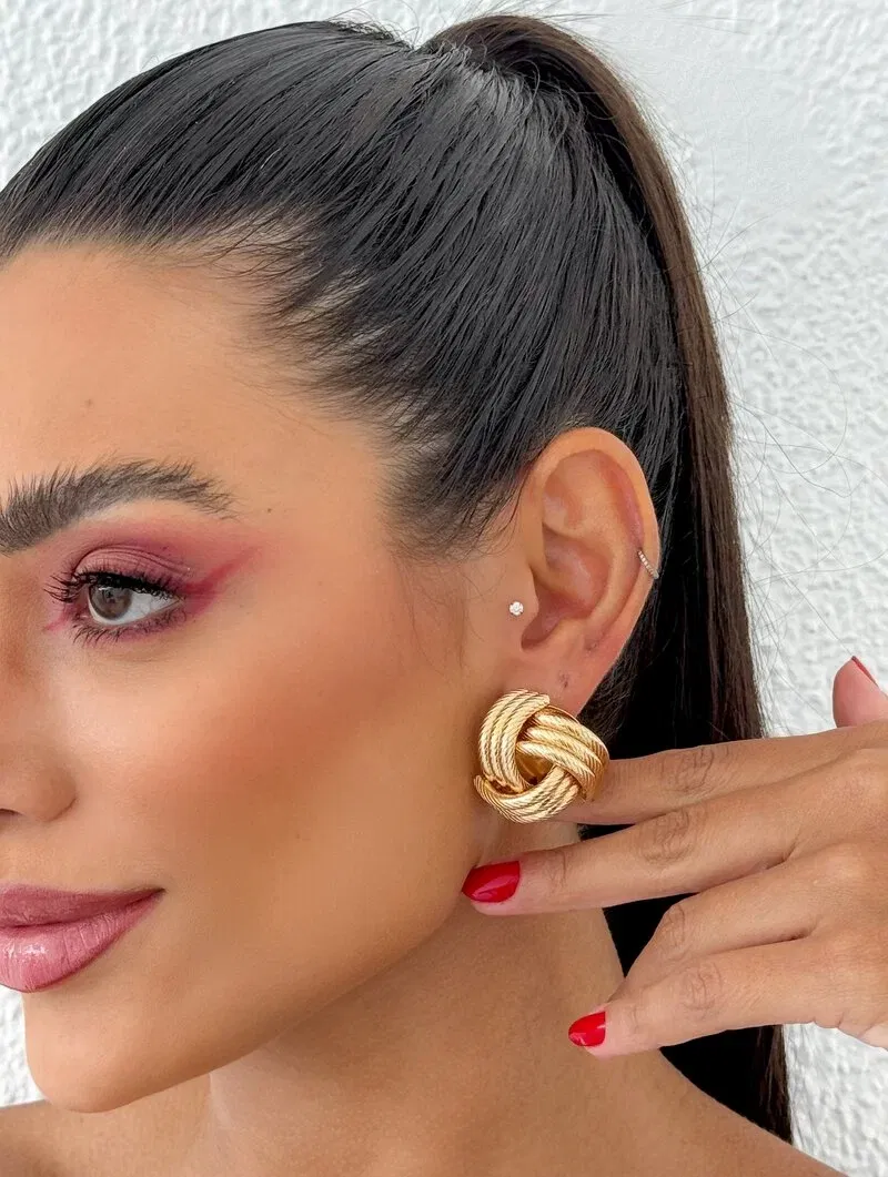 3. Brinco Folheado a Ouro 18k e Prata Maxi Botton Nove Fios G