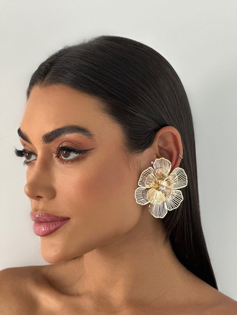 3. Brinco Folheado a Ouro 18k e Prata Maxi Flor Vazada com Zircônia