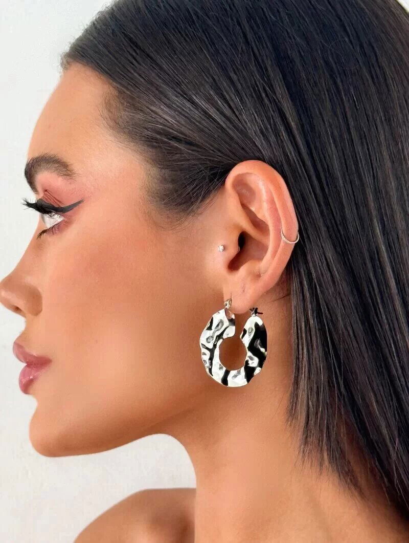 3. Brinco Folheado a Ouro 18k e Prata Meia Argola Martelada