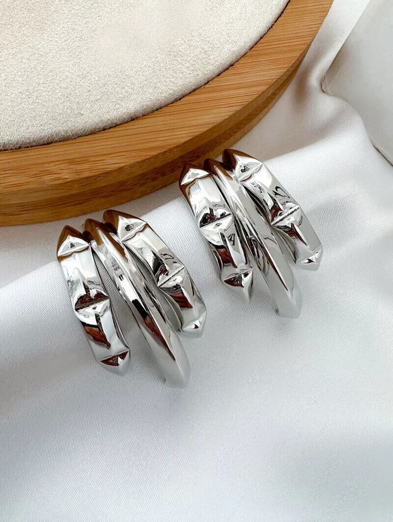 3. Brinco Folheado a Ouro 18k e Prata Meia Argola Três Fios