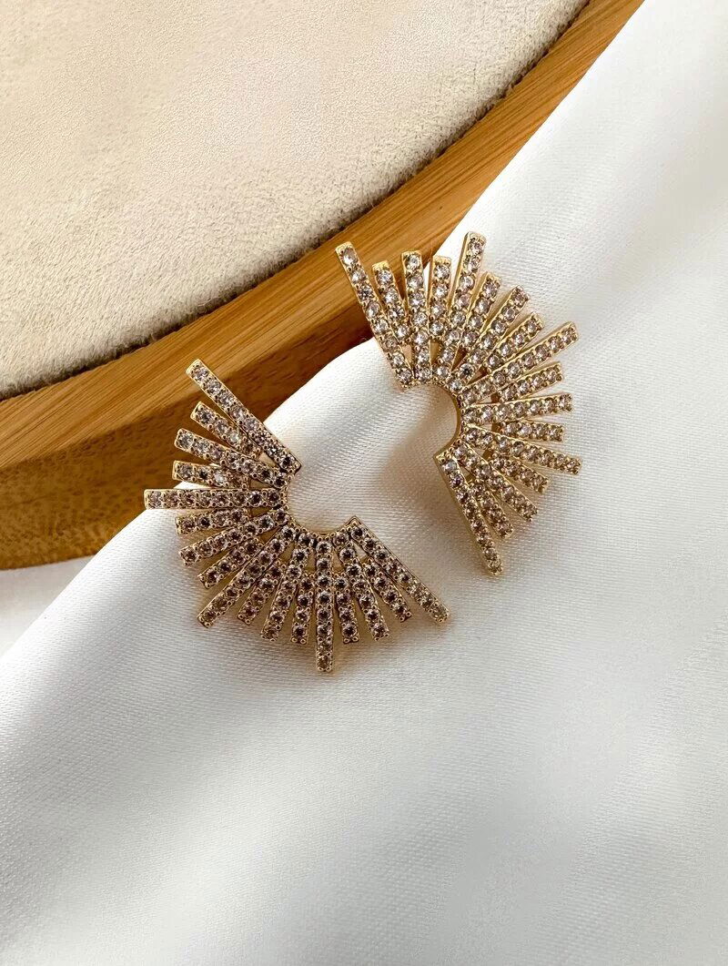Brinco Folheado a Ouro 18k e Prata Meia Lua Cravejada com Micro Zircônias