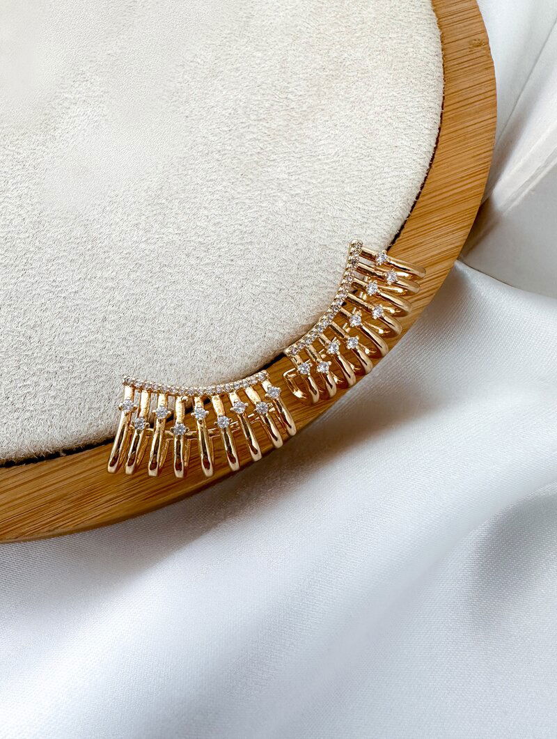 3. Brinco Folheado a Ouro 18k e Prata Nove Fios com Micro Zircônias