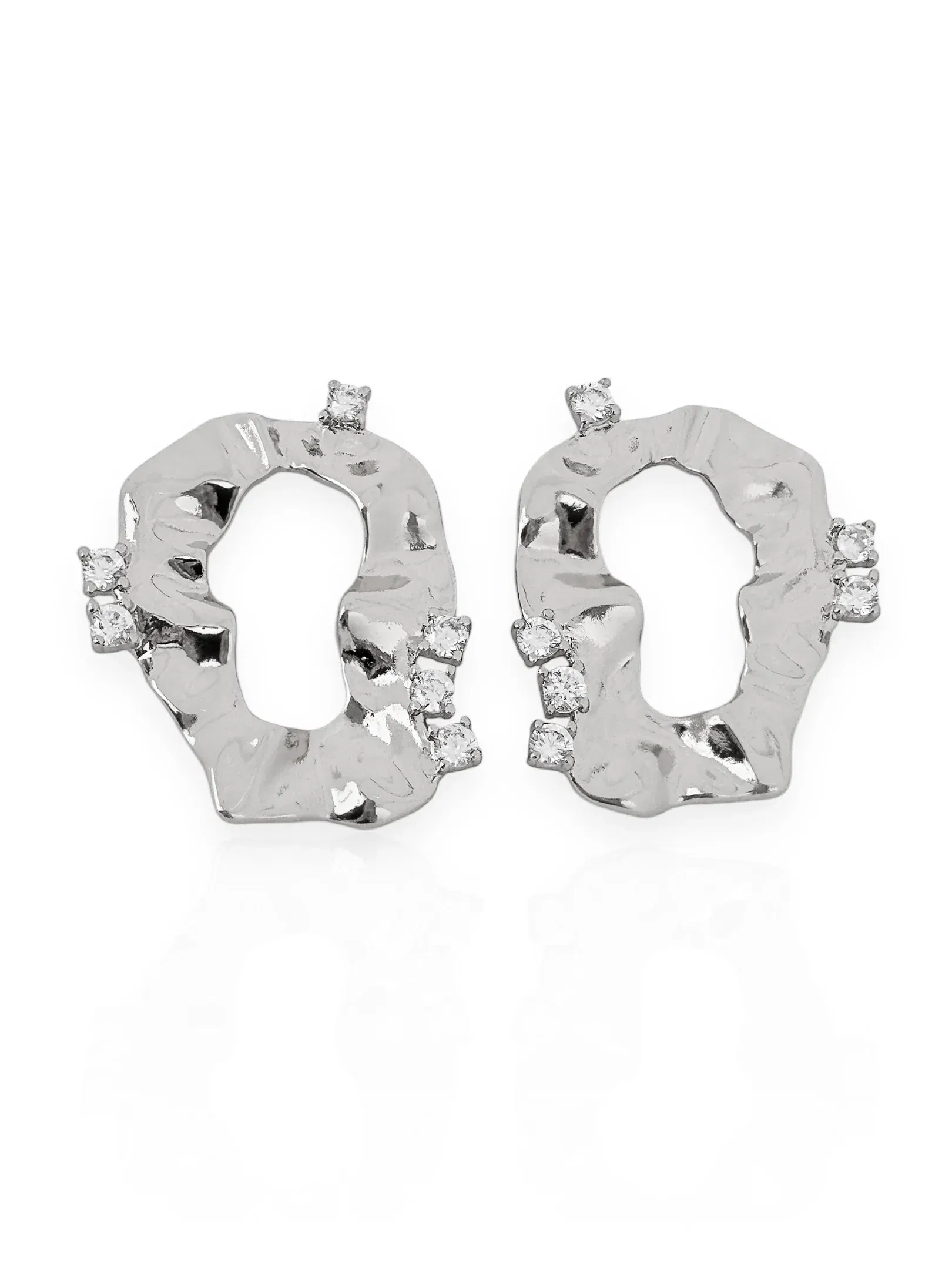 3. Brinco Folheado a Ouro 18k e Prata Orgânico Martelado Com Pontos de Luz