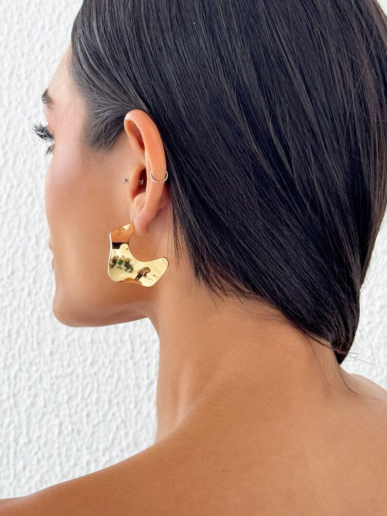 3. Brinco Folheado a Ouro 18k e Prata orgânico Ondulado