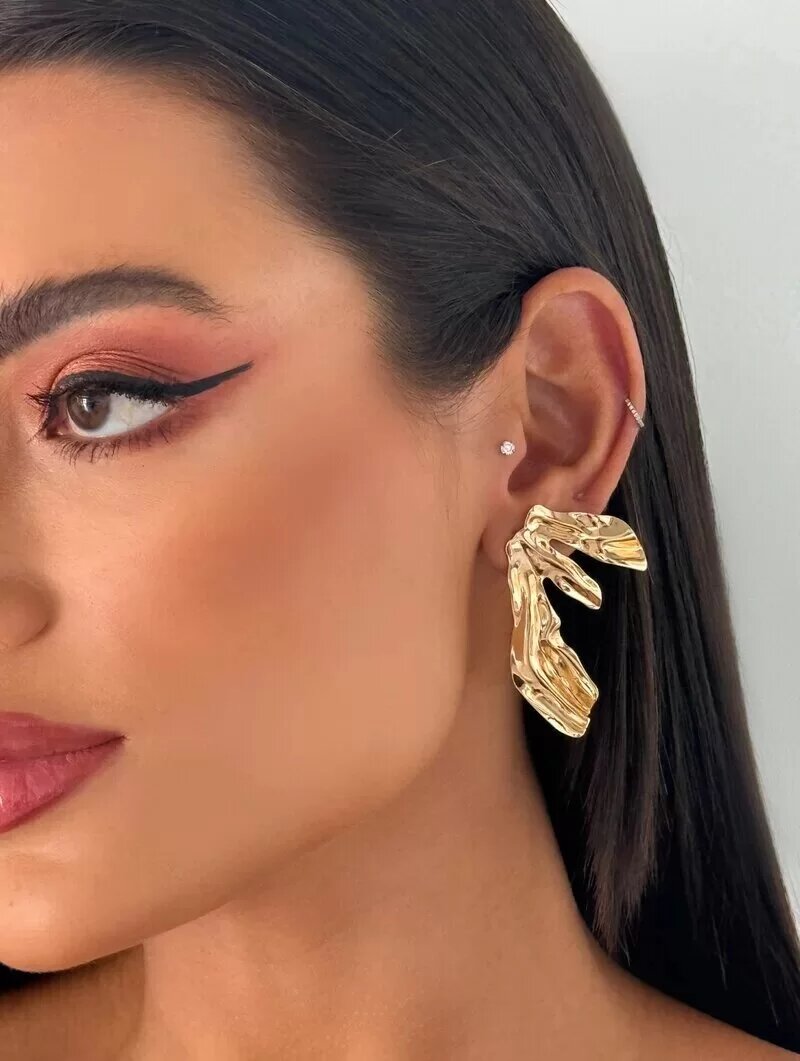 3. Brinco Folheado a Ouro 18k e Prata Orgânico Três Fios