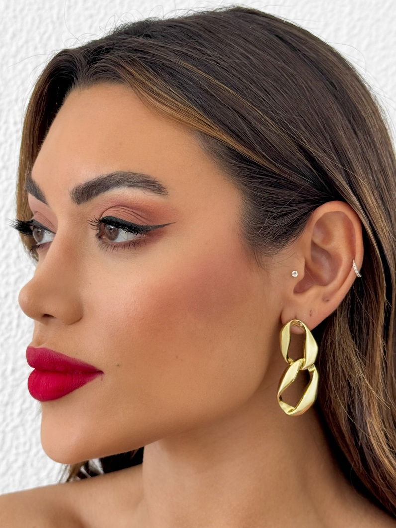 2. Brinco Folheado a Ouro 18k e Prata Oval Orgânico Duplo