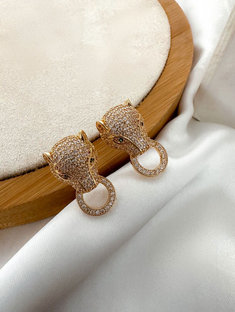 3. Brinco Folheado a Ouro 18k e Prata Pantera Cravejada