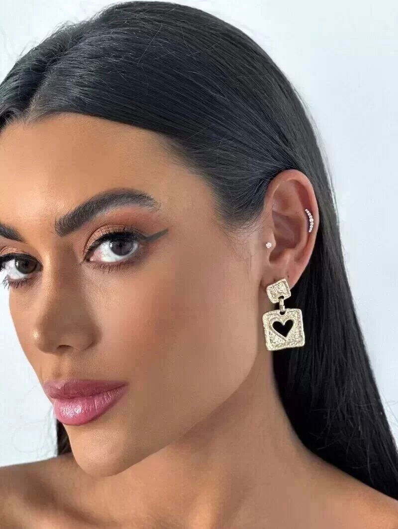 Brinco Folheado a Ouro 18k e Prata Placa Coração com Ponteira