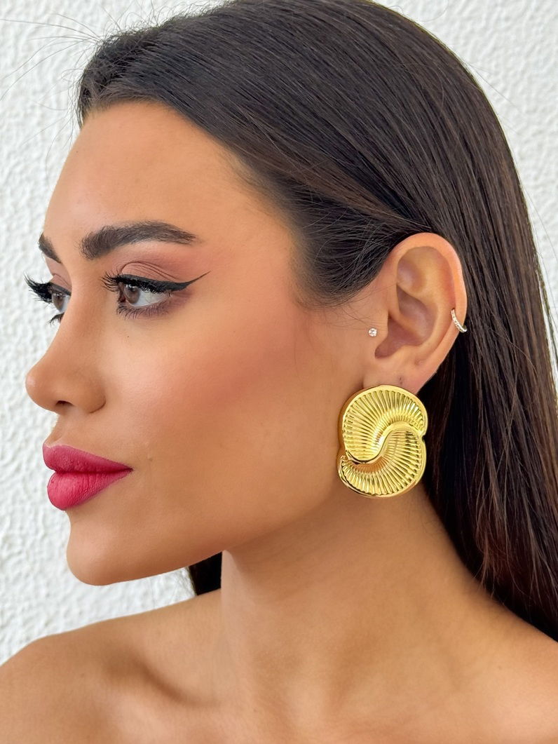 Brinco Folheado a Ouro 18k e Prata Placas Círculares Texturizadas