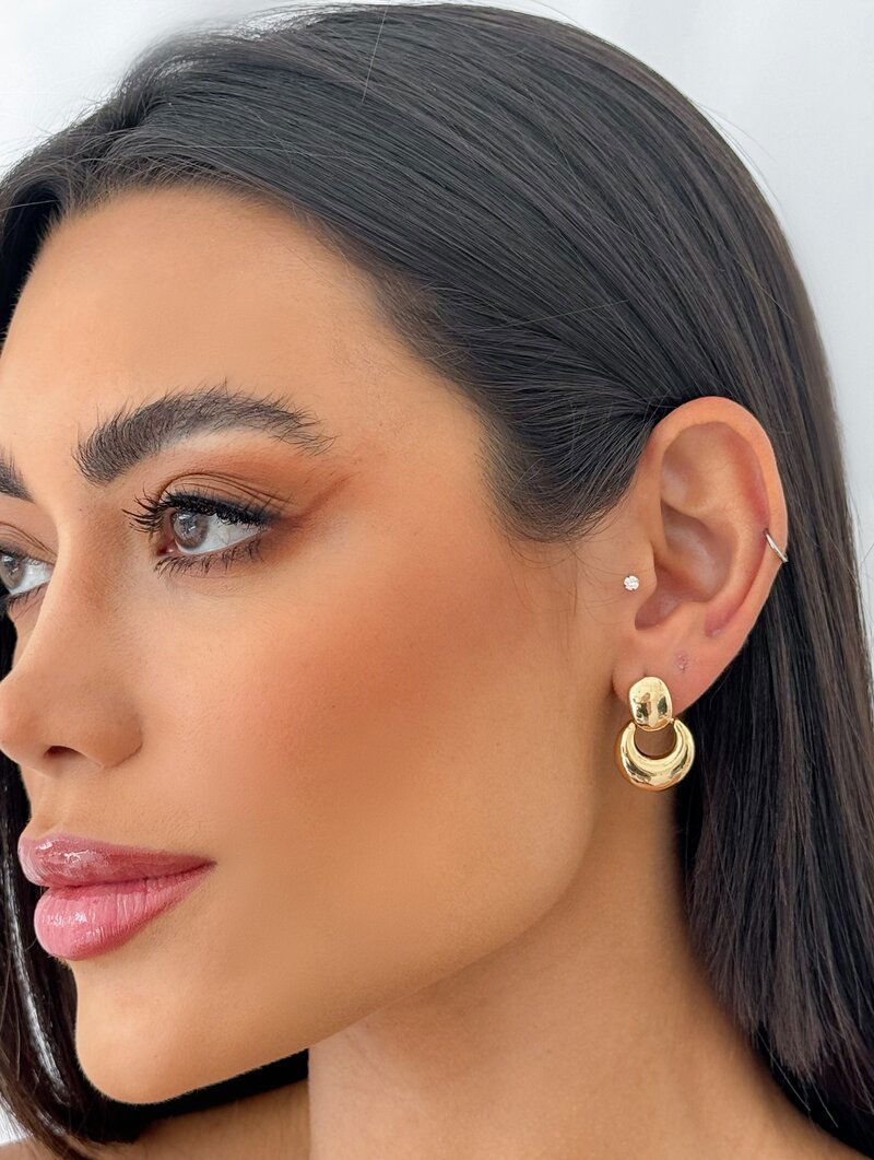 3. Brinco Folheado a Ouro 18k e Prata Ponteira Botton Com Argola Lisa