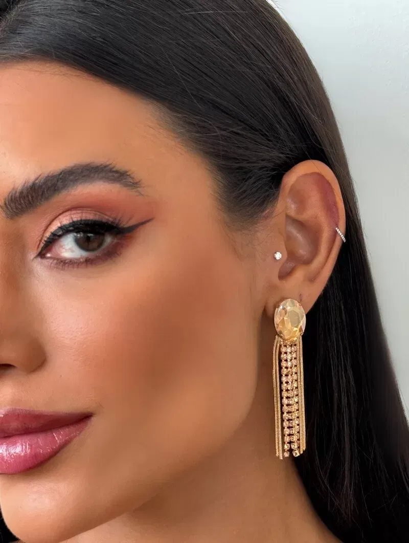 3. Brinco Folheado a Ouro 18k e Prata Ponteira Chaton com Franja