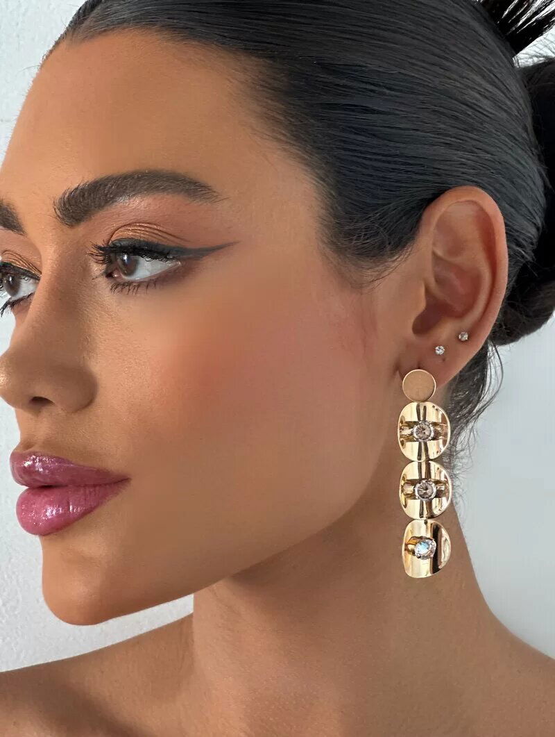 3. Brinco Folheado a Ouro 18k e Prata Ponteira com Circulos Martelados com Zircônias