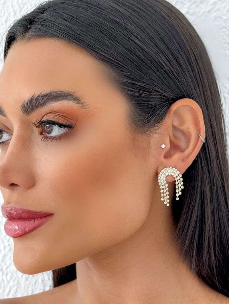3. Brinco Folheado a Ouro 18k e Prata Ponteira com Franja de Micro Zircônias