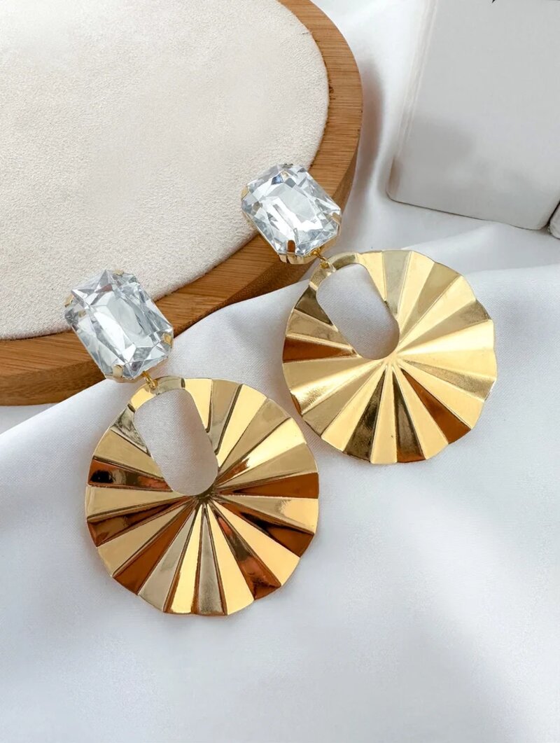 3. brinco folheado a ouro 18k e prata ponteira de zircônia com circulo leque