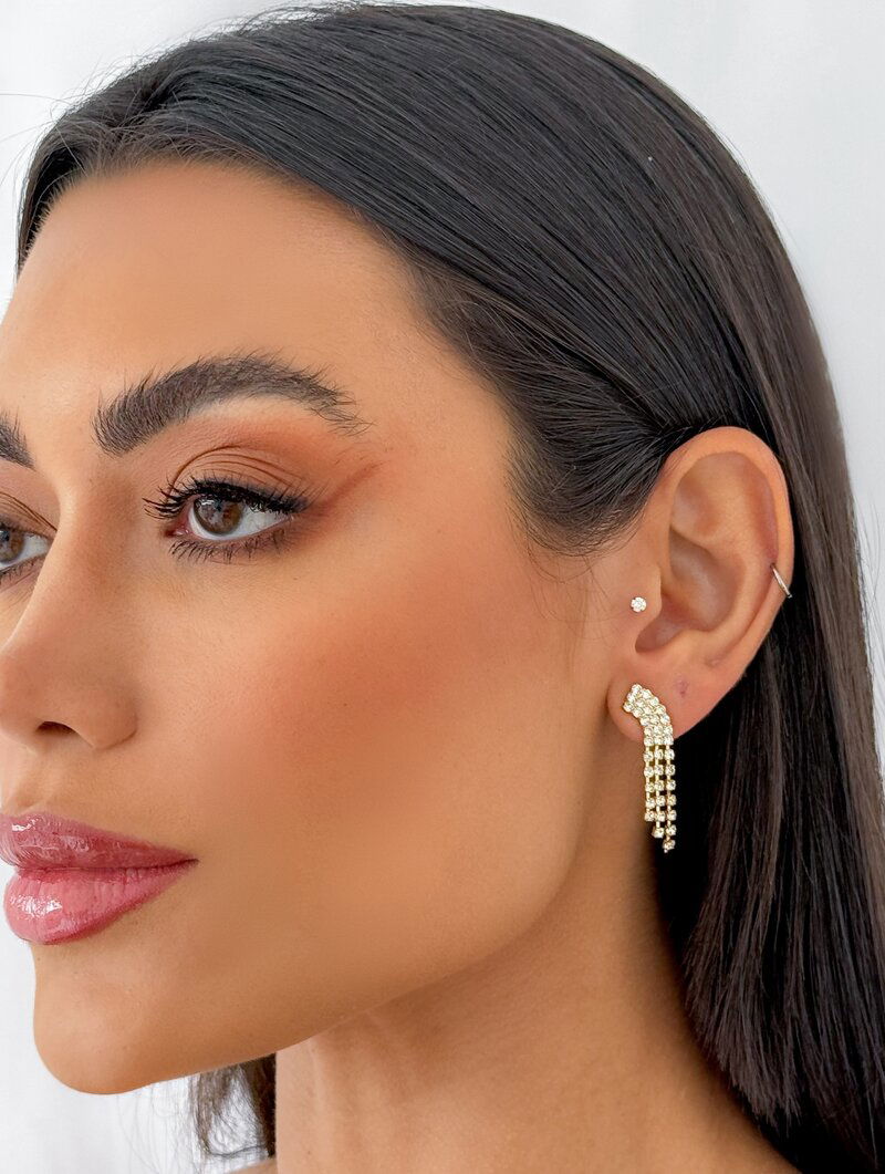 3. Brinco Folheado a Ouro 18k e Prata Ponteira e Fios e Zircônias