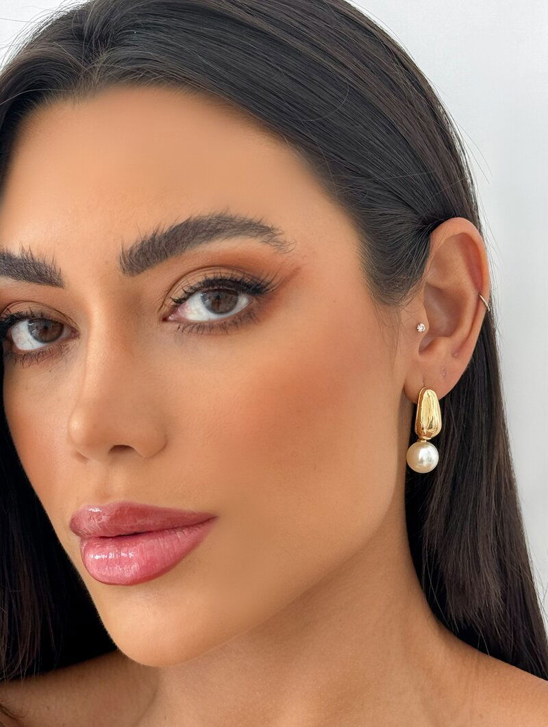 3. Brinco Folheado a Ouro 18k e Prata Ponteira Lisa com Pérola