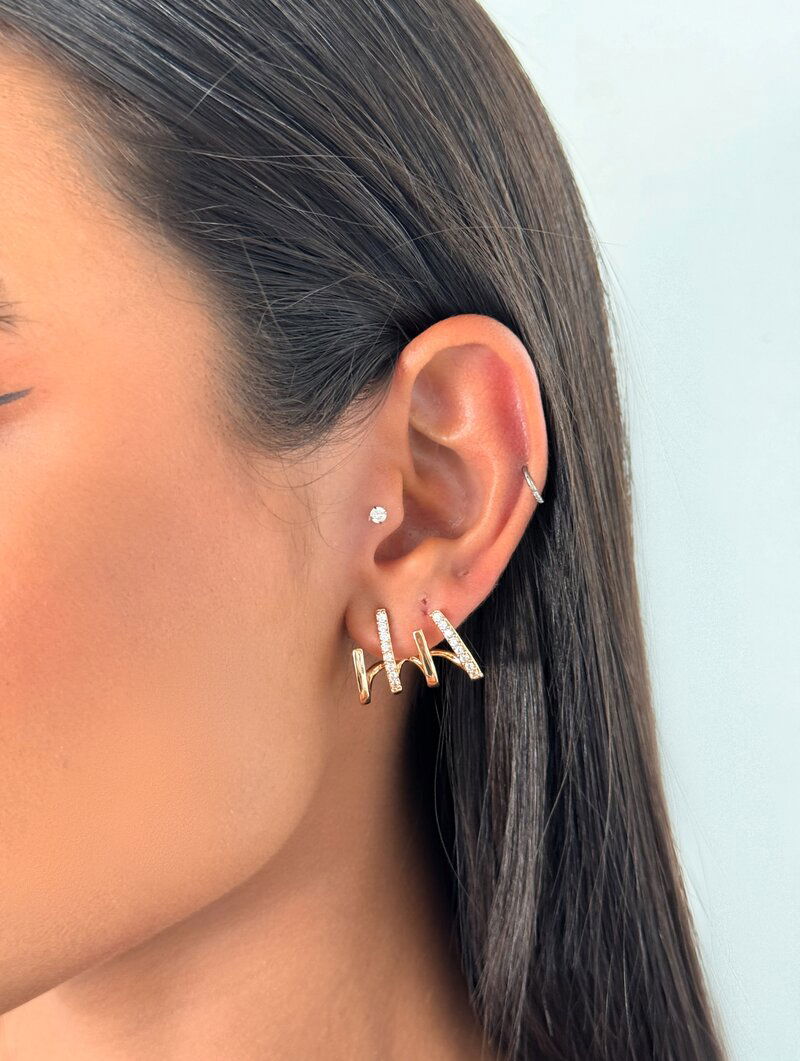Brinco Folheado a Ouro 18k e Prata Quatro Fios Lisos e Cravejados