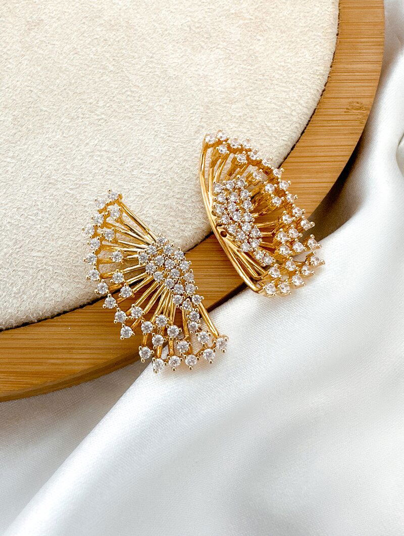 3. Brinco Folheado a Ouro 18k e Prata Ramo de Flores Cravejadas