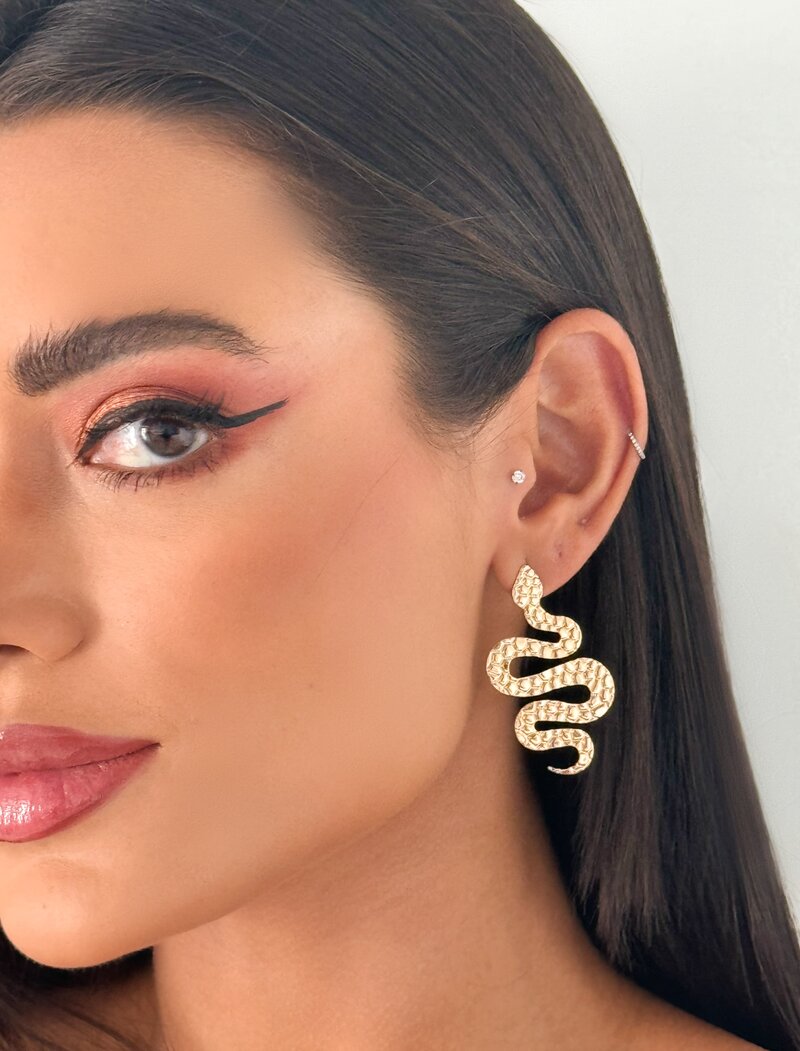 3. Brinco Folheado a Ouro 18k e Prata Serpente Texturizada