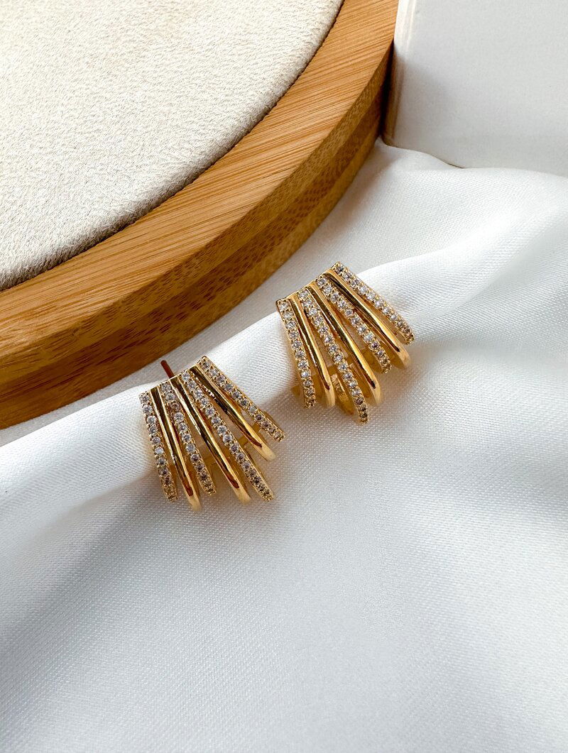 3. Brinco Folheado a Ouro 18k e Prata Sete Fios com Detalhes Cravejados