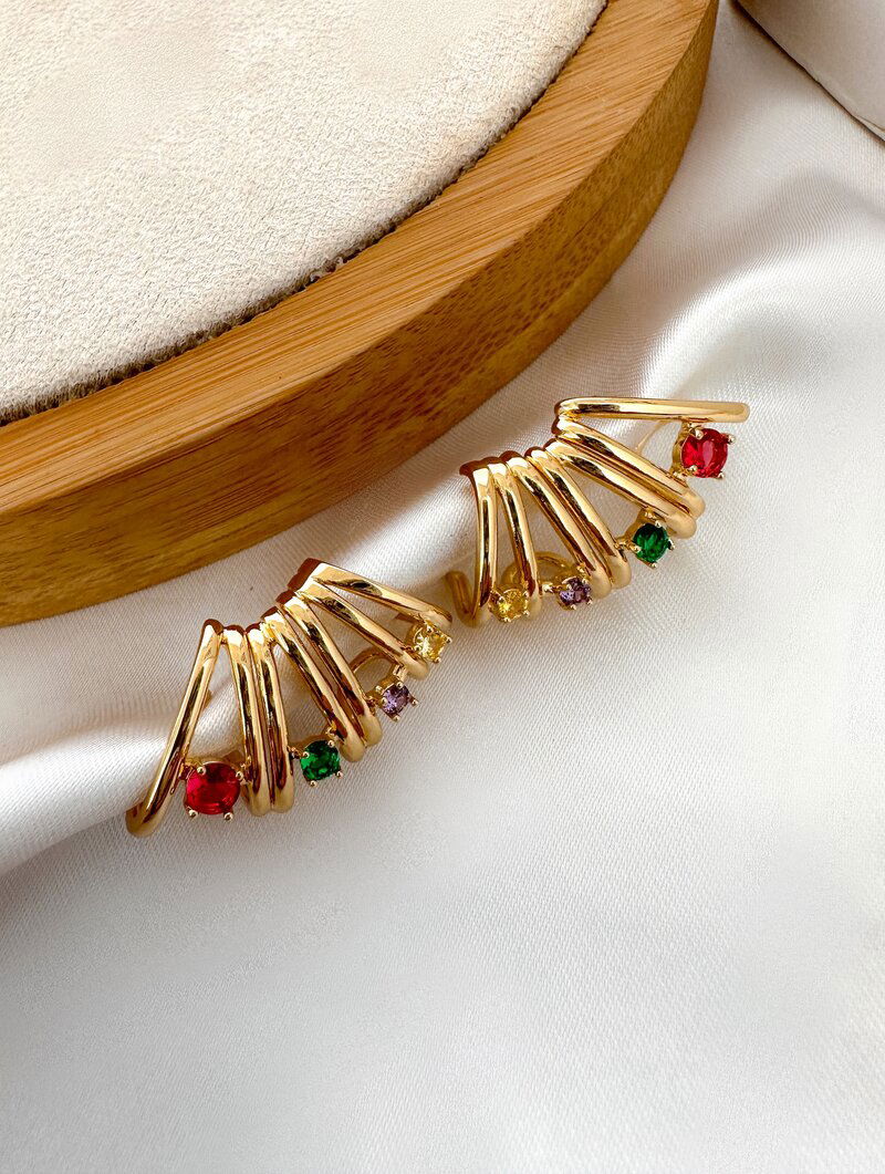 3. Brinco Folheado a Ouro 18k e Prata Sete Fios com Zircônias