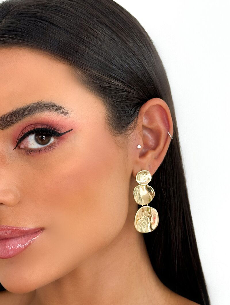 3. Brinco Folheado a Ouro 18k e Prata Três Bottons Lisos