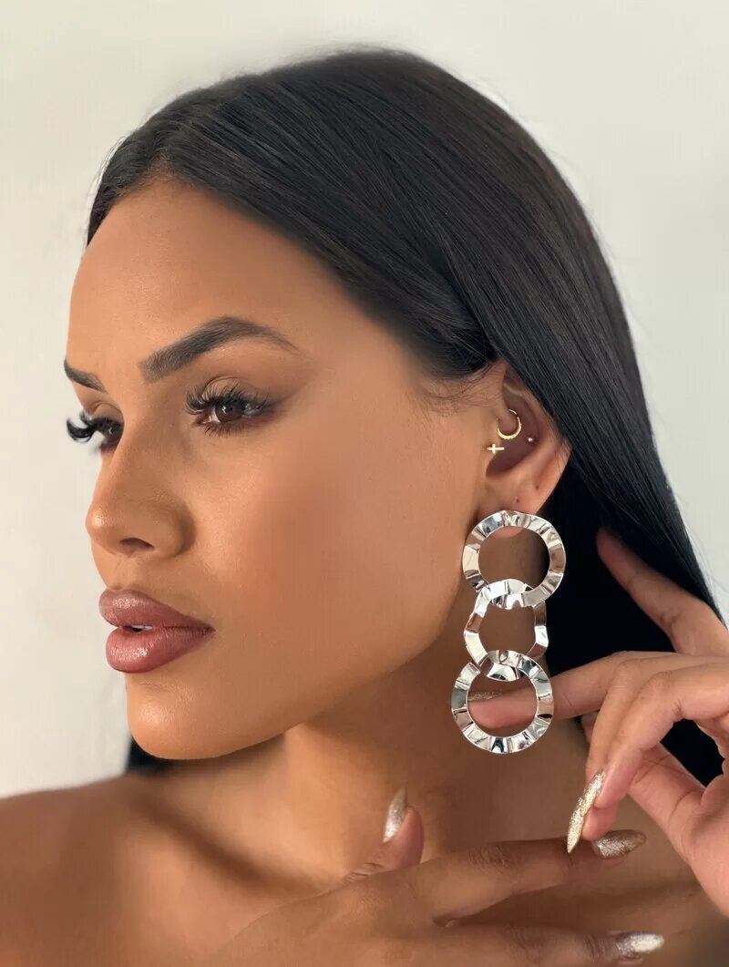 3. Brinco Folheado a Ouro 18k e Prata Três Circulos Vazados Martelados
