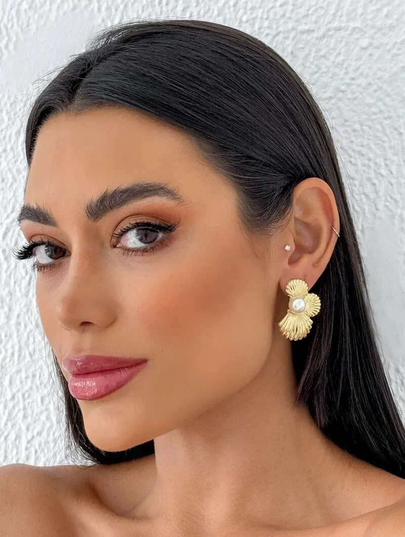 3. Brinco Folheado a Ouro 18k e Prata Três Conchas com Pérola