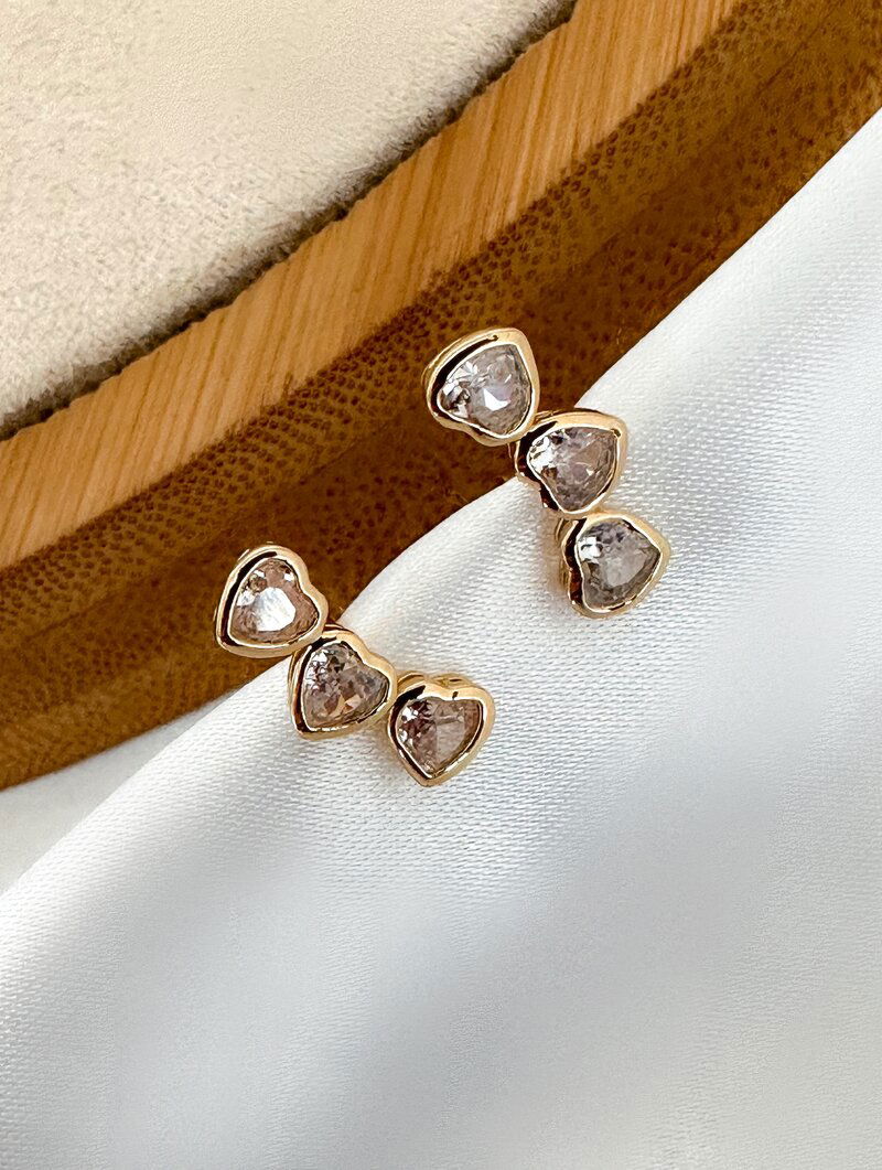 Brinco Folheado a Ouro 18k e Prata Três Corações de Zircônia
