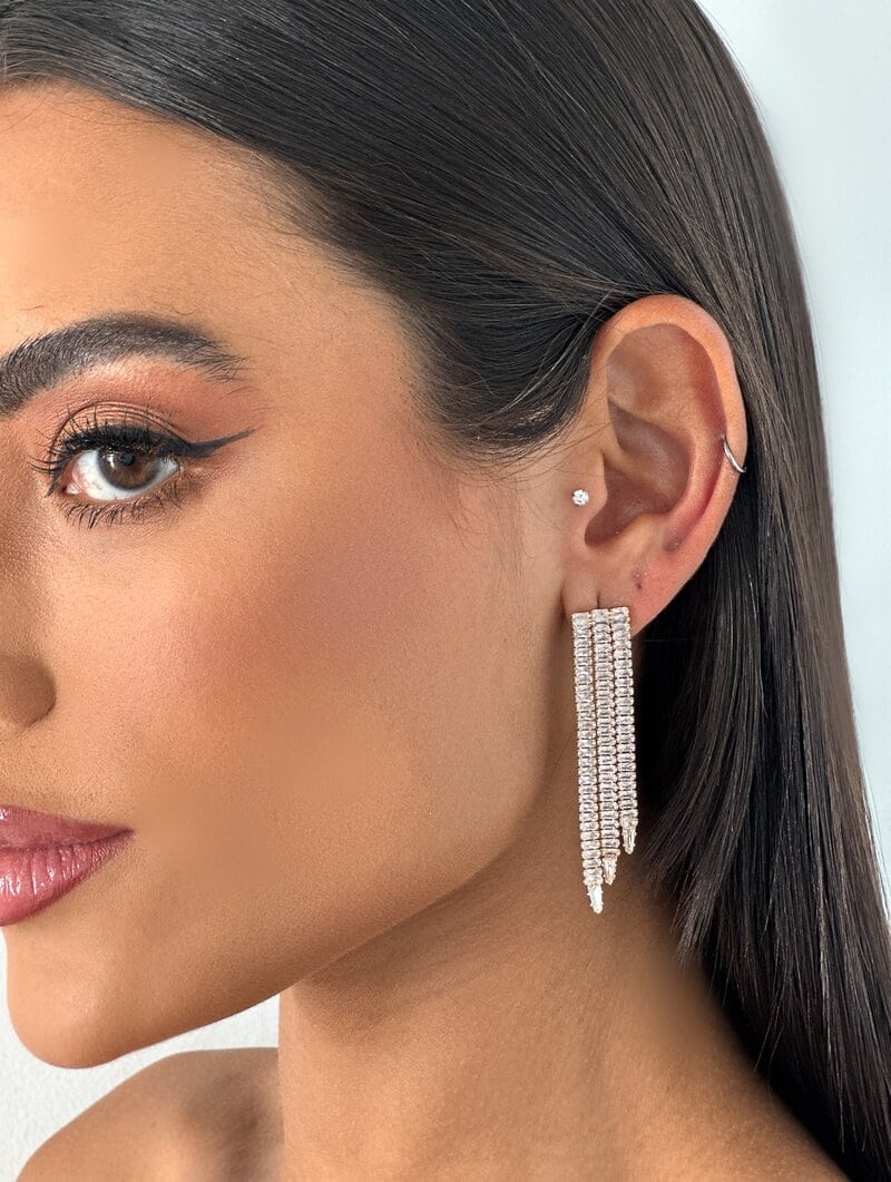 3. Brinco Folheado a Ouro 18k e Prata Três Fios de Zircônias