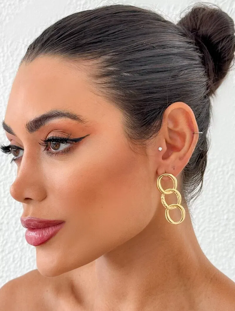 3. Brinco Folheado a Ouro 18k Elos Triplos