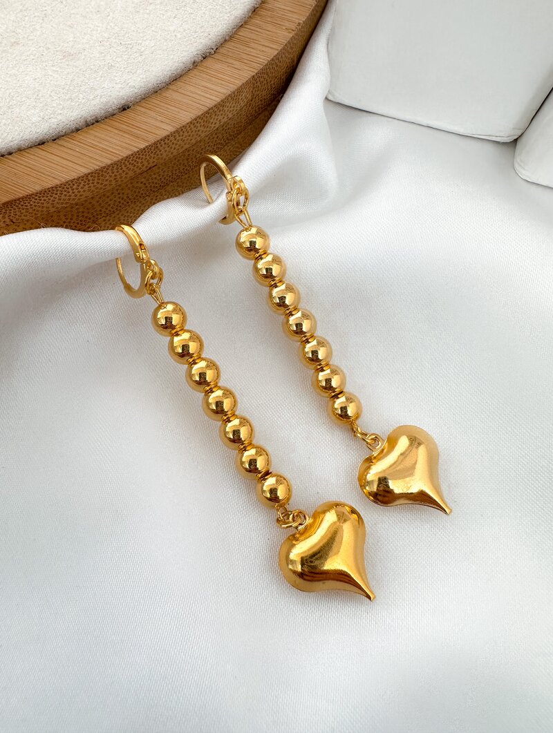 Brinco Folheado a Ouro 18k Esferas com Coração