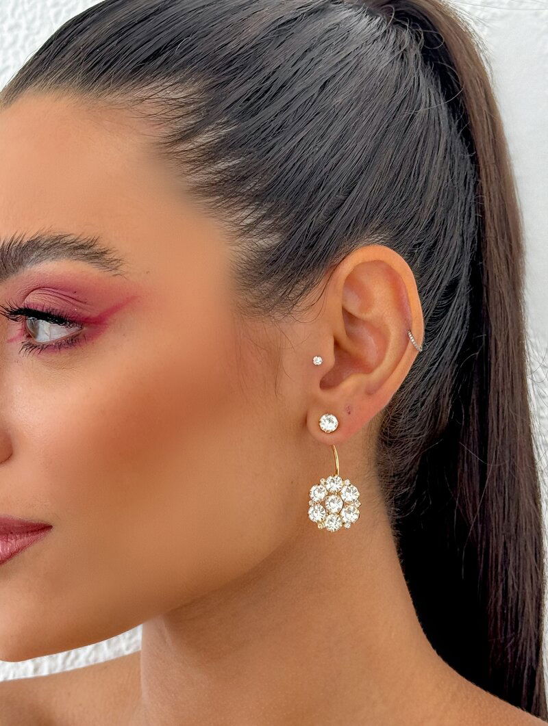 3. Brinco Folheado a Ouro 18k Flor de Zircônias