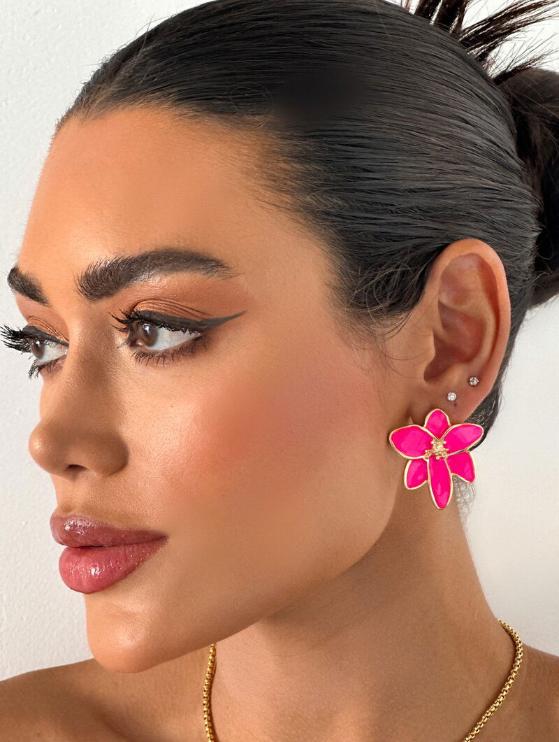 3. Brinco Folheado a Ouro 18k Flor Seis Pétalas Resinado