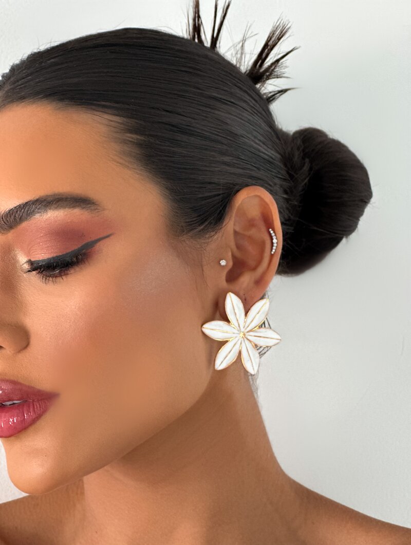 3. Brinco Folheado a Ouro 18k Flor Seis Pétalas Resinado