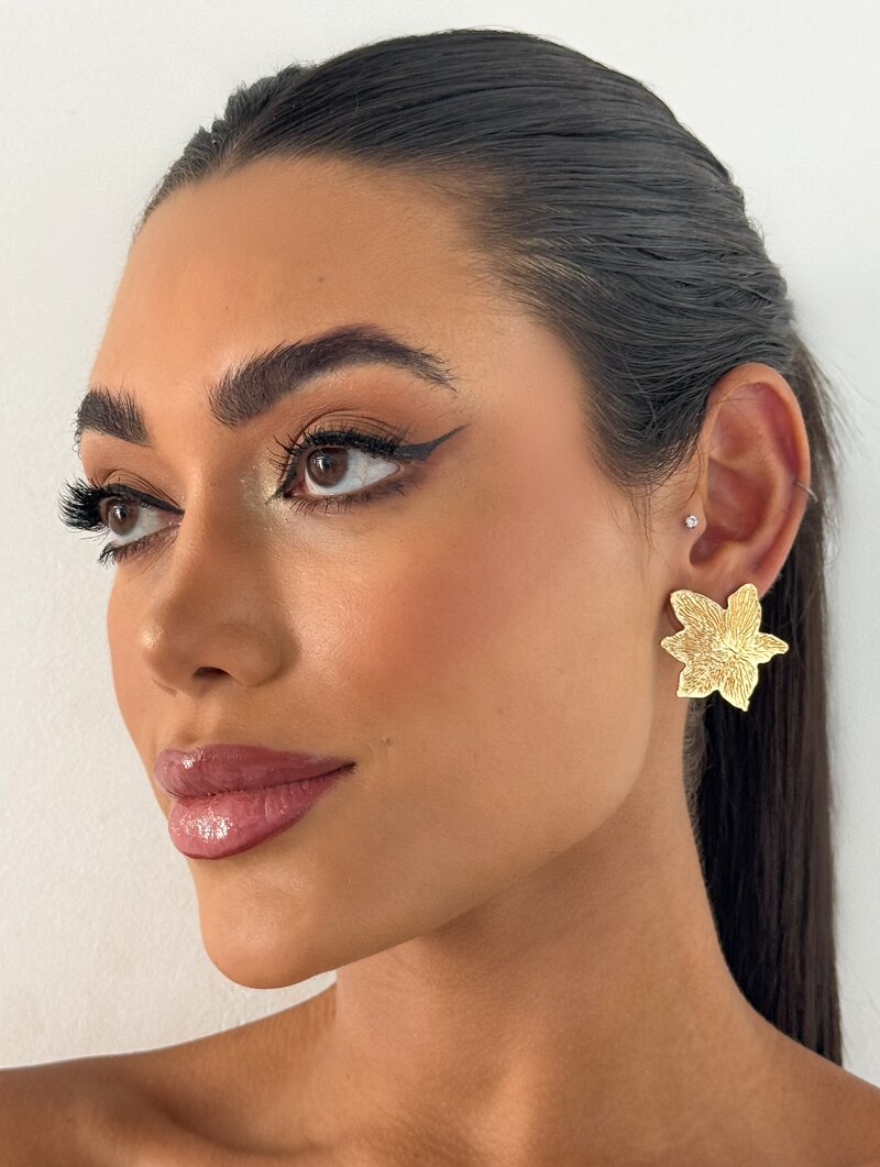 3. Brinco Folheado a Ouro 18k Flor Texturizada Seis Pétalas