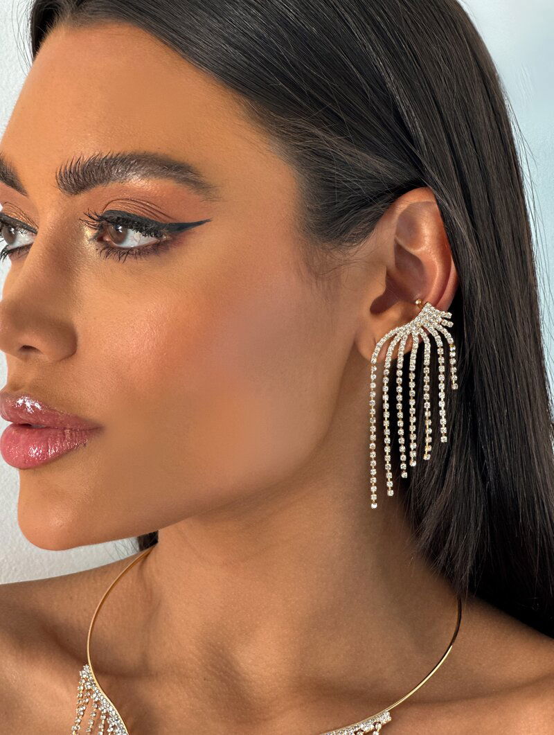 Brinco Folheado a Ouro 18k Franja de Micro Zircônia